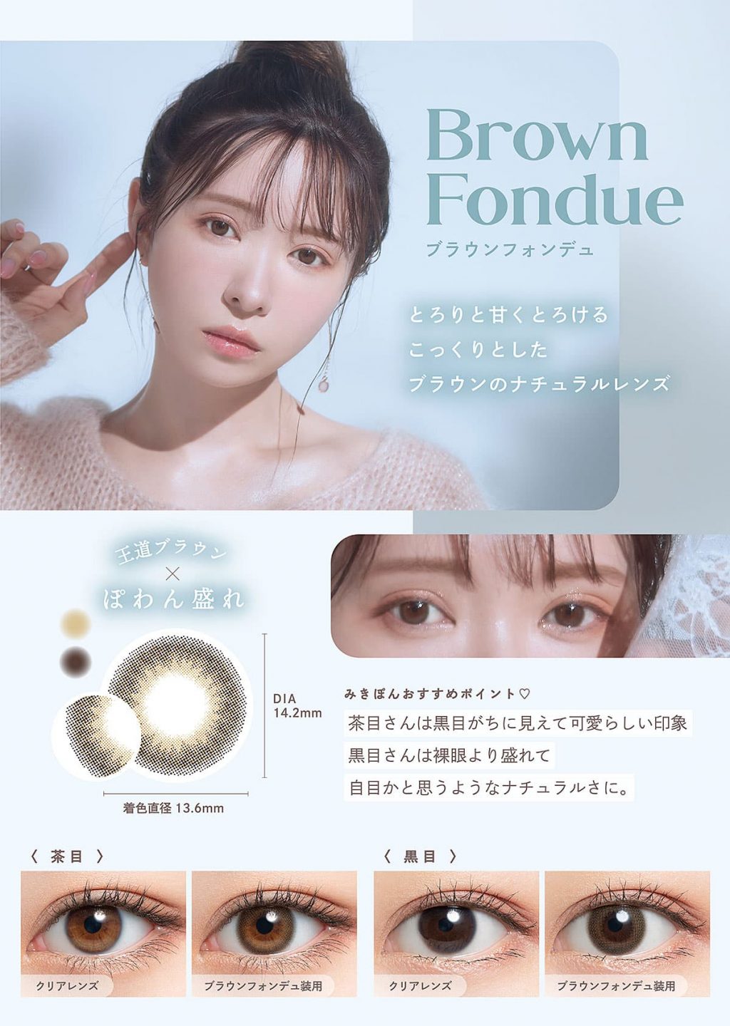 とろりと甘くとろける、こっくりとしたブラウンのナチュラルレンズ。 デートに行く時や可愛らしく見せたい時に!